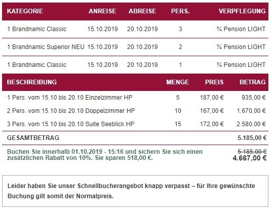 Auf der MiA-Seite verschwindet der Rabatt inkl. Text (direkt bei den Angeboten und auch auf dem Buchungsformular), wenn der Gast nicht schnell genug war.